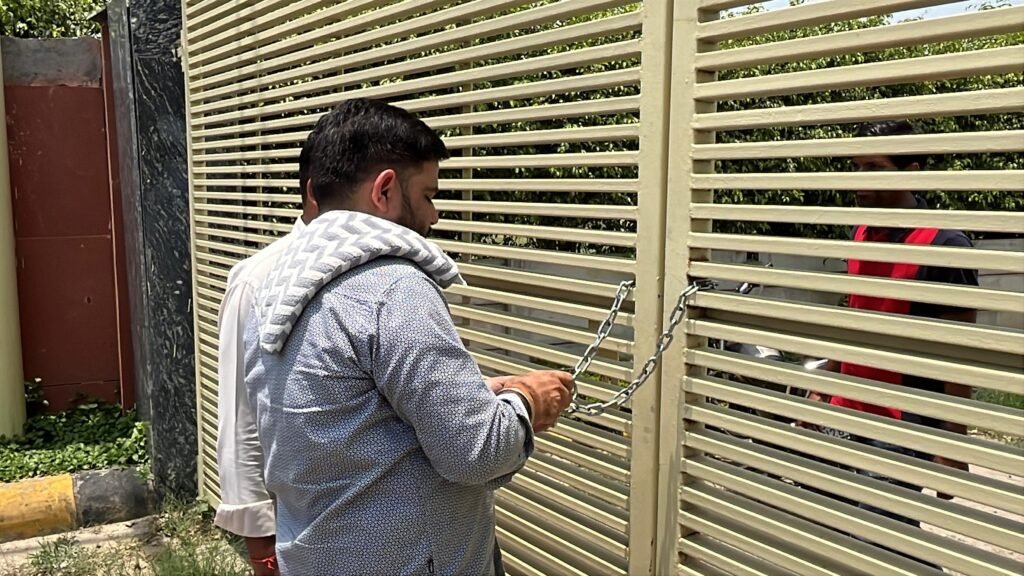 मेरठ ।मेरठ रोड स्थित मवाना रोड पर स्थित बन रही जेपी ग्रुप की ओर से जेपी रेजिडेंसी कॉलोनी में हाथरस के रहने वाले रवि मिश्रा ने सन् 2024 में एक 128 वर्ग मीटर का प्लॉट 17 हज़ार रुपया गज से ख़रीदा था रवि मिश्रा का आरोप है कि वे प्लाट के सारे पैसे दे हैं लेकिन जेपी ग्रुप ने अभी तक भी उसकी रजिस्ट्री नहीं की है बार बार कहने के बावजूद भी उनकी रजिस्टर नहीं की जा रही है अब आख़िर में तंग आकर किसानों के साथ मे इक्कटा होकर बुधवार को वह मवाना रोड स्थित रेसिडेंसी के बाहर पहुँचे और कालोनी के मेन गेट मे ताला लगा दिया और जमकर हंगामा किया किसानों ने बताया की और लोगो के साथ भी जेपी ग्रुप ने ऐसा मामला किया हुआ है