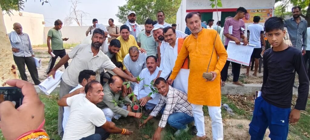 मेरठ।भारतीय मतदाता संघ के बैनर तले राष्ट्रीय अध्यक्ष पंडित आदेश फौजी के नेतृत्व में ग्राम पंचायत कककेपुर में विश्व पर्यावरण दिवस के अवसर पर एक पेड़ माँ के नाम और मां गंगा दशहरा इस दिन गंगे मैय्या ने धरती पर भगवान शिव की जटाओं से राजा भागीरथ के तप से धरती पर अवतरित हुई आज ही के दिन परम पूज्यनीय नित्य वंदनीय हिन्दू ह्रदय सम्राट पखर राष्ट्रवादी अन्त विभूषित उत्तर प्रदेश के मुख्यमंत्री गौरखनाथ पीठ गोरखपुर के पीठाधीश्वर परम पूज्यनीय योगी आदित्यनाथ महाराज का 53 वां जन्मदिन है इसी उपलक्ष्य में 53 छायादार एवं फलदार वृक्षों का वितरण एवं 53 गंगाजल की शीशी जो प्रयागराज कुंभ के त्रिवेणी संगम घाट से लायीं गई है वितरित की गई और 53 संतों को सम्मानित करने का लक्ष्य रखा गया
